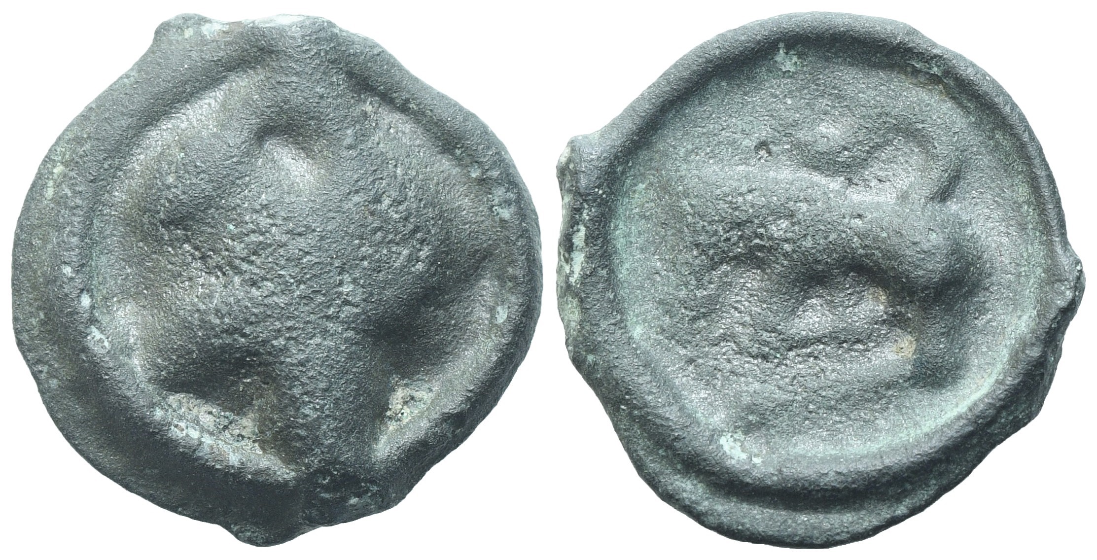 Gallia, Turons (Touraine region), 2nd-1st centuries BC, Potin "With the Devilish Head"; (2,07 g; 14,5 mm)