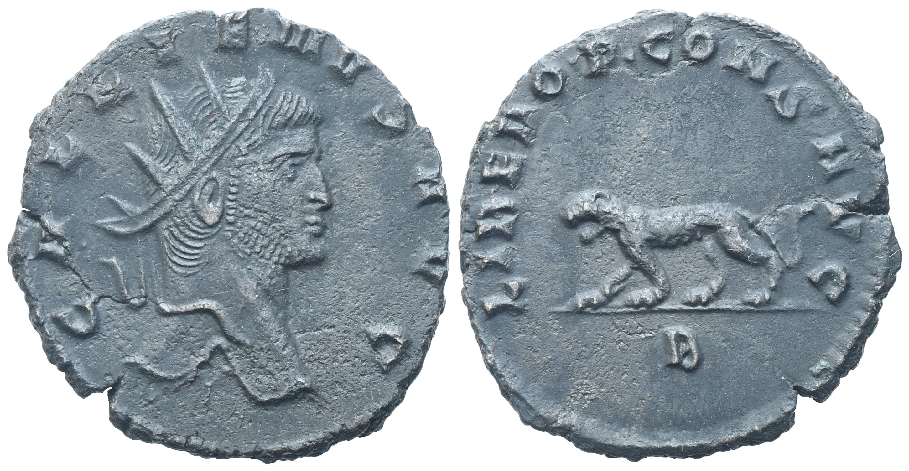 GALLIENVS AVG Radiate, draped and cuirassed bust r.; Rv. LIBERO P CONS AVG Tigress walking l., B in exergue. RIC 230. gVF