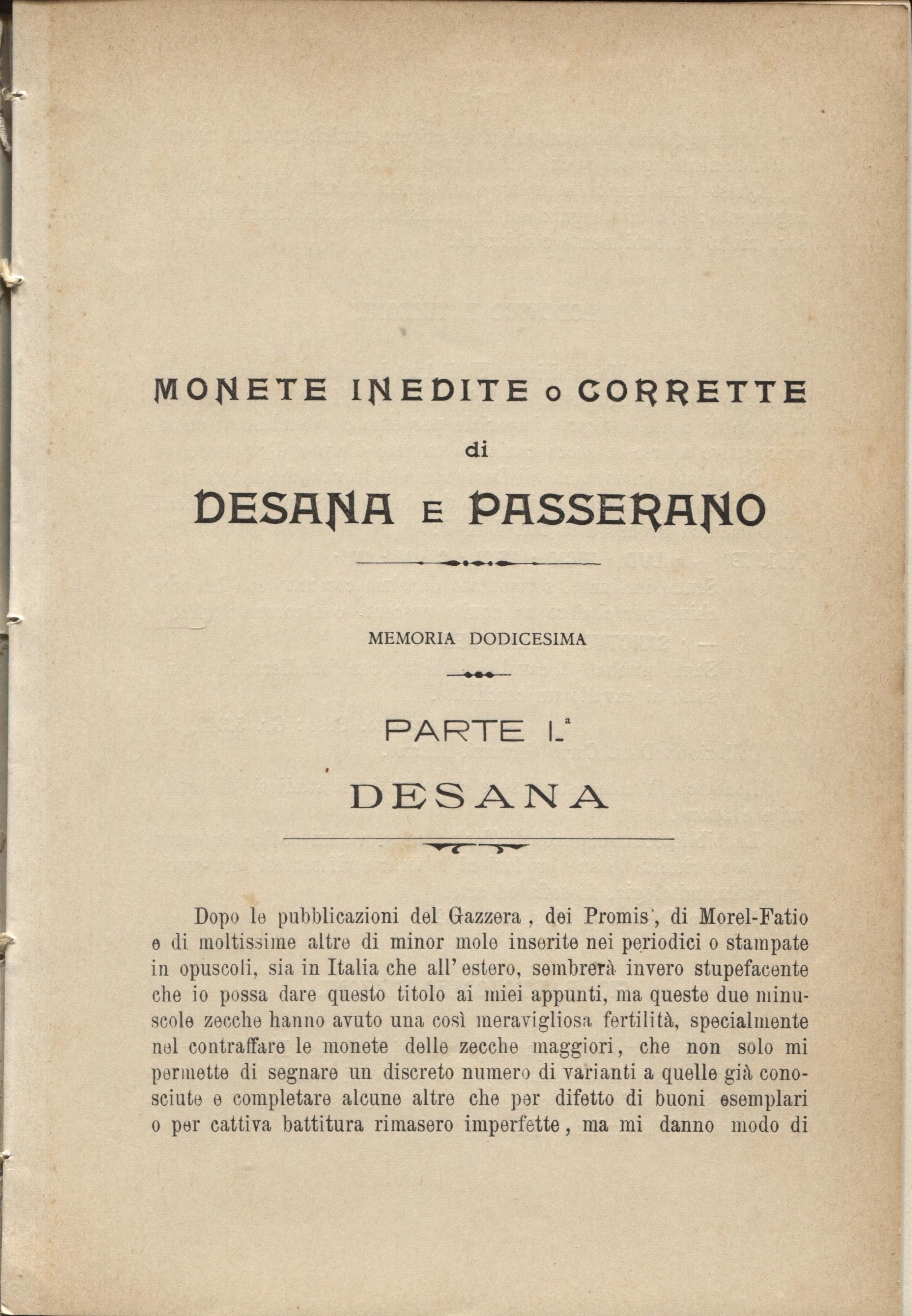 GRILLO G. - Monete inedite o corrette di Desana e Passerano. Milano, 1907. pp. 16, tavv. 4. brossura ed. sciupata, interno buono stato, molto raro.