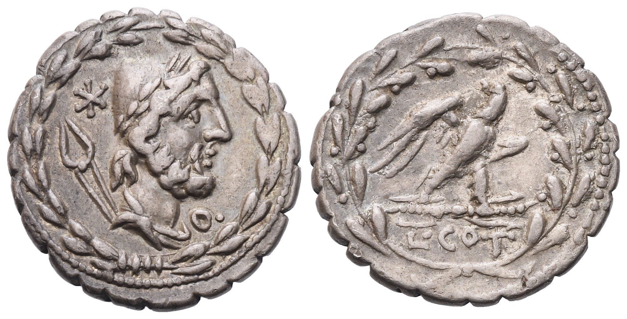 L. Aurelius Cotta, Denarius serratus, 105 BC; AR (3,91 g; 19 mm; 3 h)