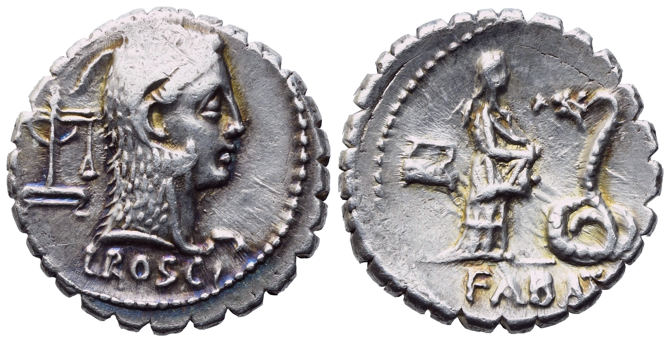 L. Roscius Fabatus, Denarius serratus, Rome, 59 BC; AR (3,91 g; 17,8 mm; 4 h)