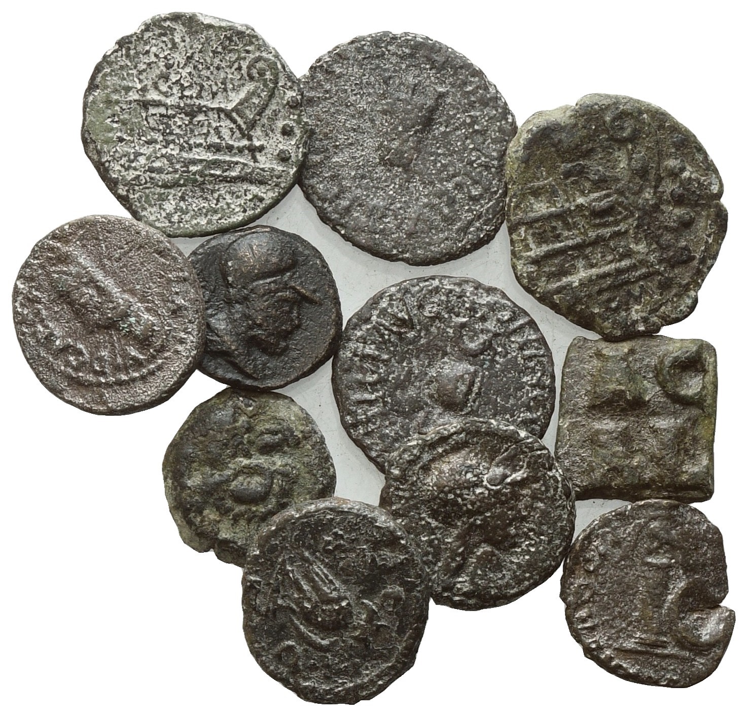 Lot of 10 Γ coins and 1 tessera to be catalogued. Lot to be sold as is, no returns.