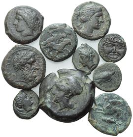 Lot of 10 Greek Æ coins to be catalogued. Lot to be sold as is, no returns.