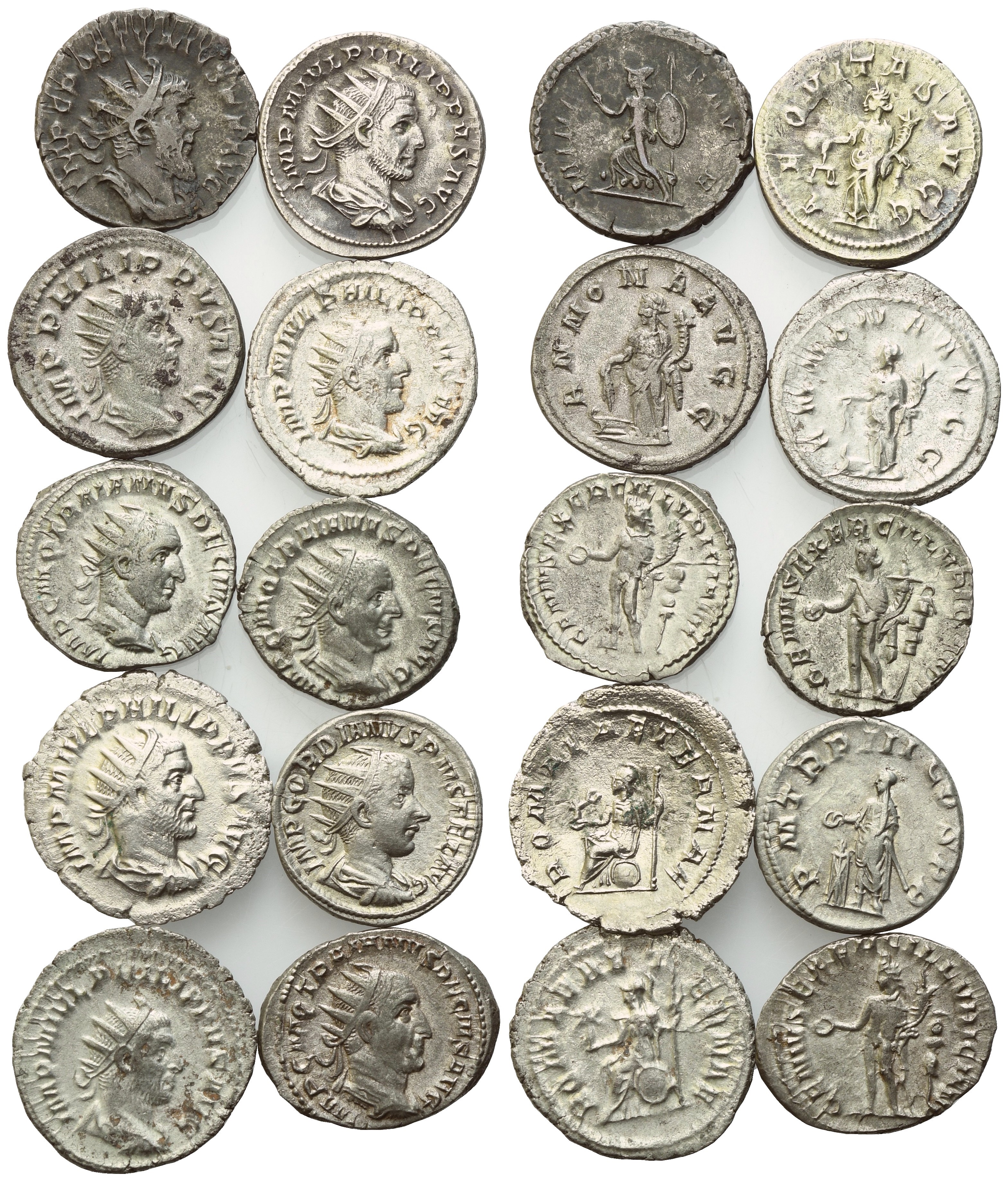 Lot of 10 Roman AR coins to be catalogued. Lot to be sold as is, no returns.