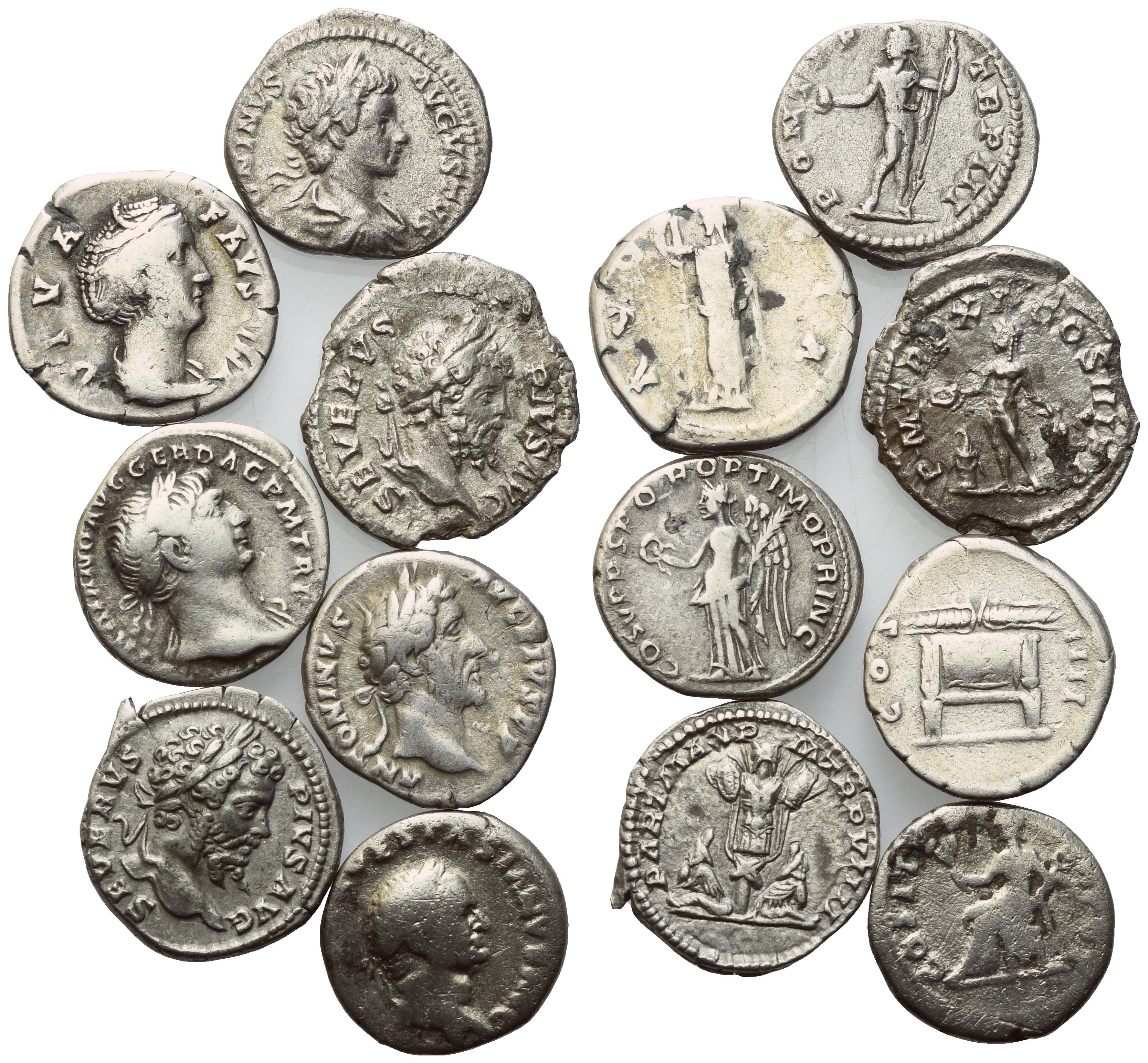 Lot of 7 Roman AR coins to be catalogued. Lot to be sold as is, no returns.