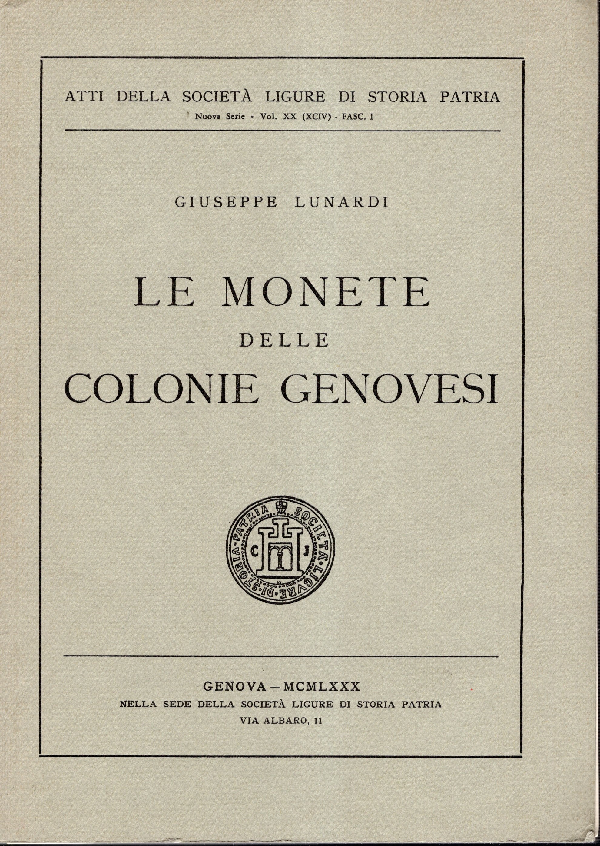 LUNARDI Giuseppe - Le monete delle colonie genovesi. Genova, 1980. pp. 317, tavv. e ill. nel testo. legatura ed. buono stato, importante opera di riferimento delle colonie genovesi.