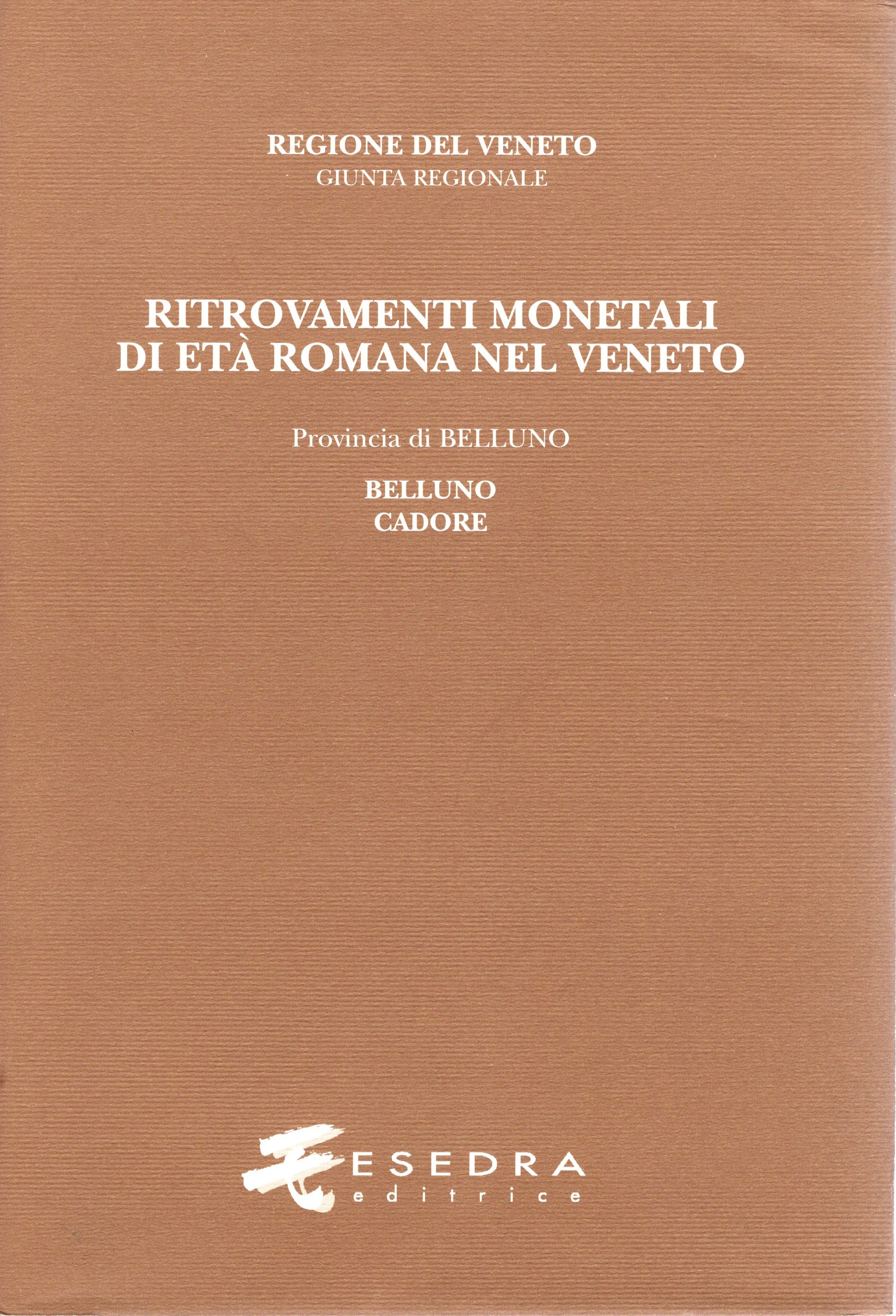 MARCER J. - Ritrovamenti monetali di età romana nel Veneto. Provincia I: Belluno Volume 1: Comuni di: Agordo,Alleghe,Belluno,Canale d'Agordo,Castelvazzo,La Valle Agordina,Lentiai,Limana,Livinallongo del Col di Lana, Longarone,Mel,Pieved'Alpago,Ponte nelle Alpi,Sedico,Sospirolo, Taibon Agordino,Tambre,Trichiana,Voltago Agordino. Volume 3 Cadore. Comuni di: Auronzo di Cadore,Calalzo di Cadore,Cibiana di Cadore,Cortinad'Ampezzo,Domegge di Cadore,Lorenzago di Cadore,Lozzo di Cadore,Pieve di Cadore,S.Vito di Cadore,Valle di Cadore, Vigo di Cadore. Padova, 2006. pp xiii -371, tavv. 7 + carte. rilegatura editoriale, ottimo stato.