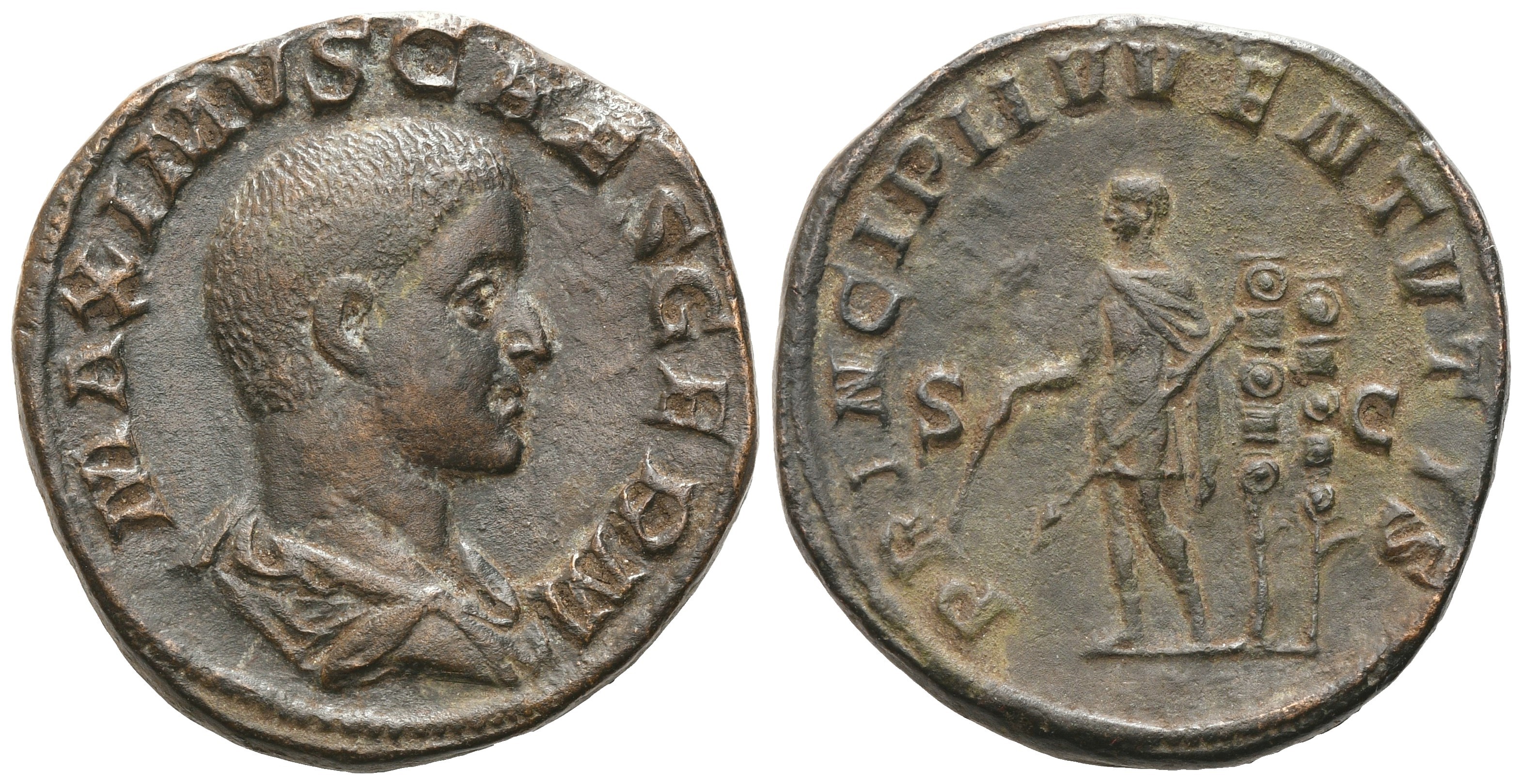 Maximus as Caesar, Sestertius struck under Maximinus I, Rome, 235-236; Γ (20,97 g; 30,6 mm; 12 h)
