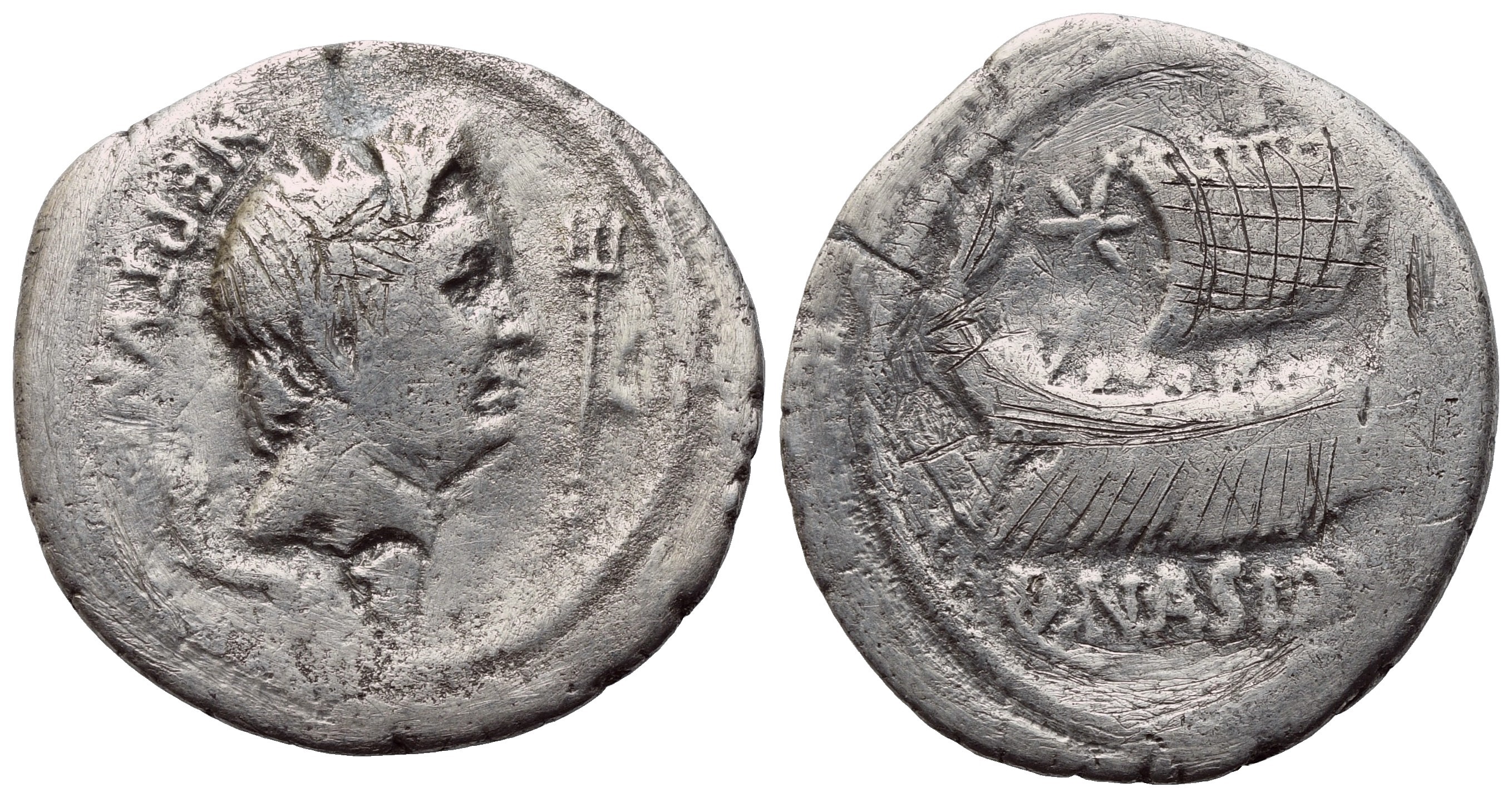 Sextus Pompey and Q. Nasidius, Denarius, Massalia, 42-38 BC; AR (2,95 g; 18,5 mm; 3 h)