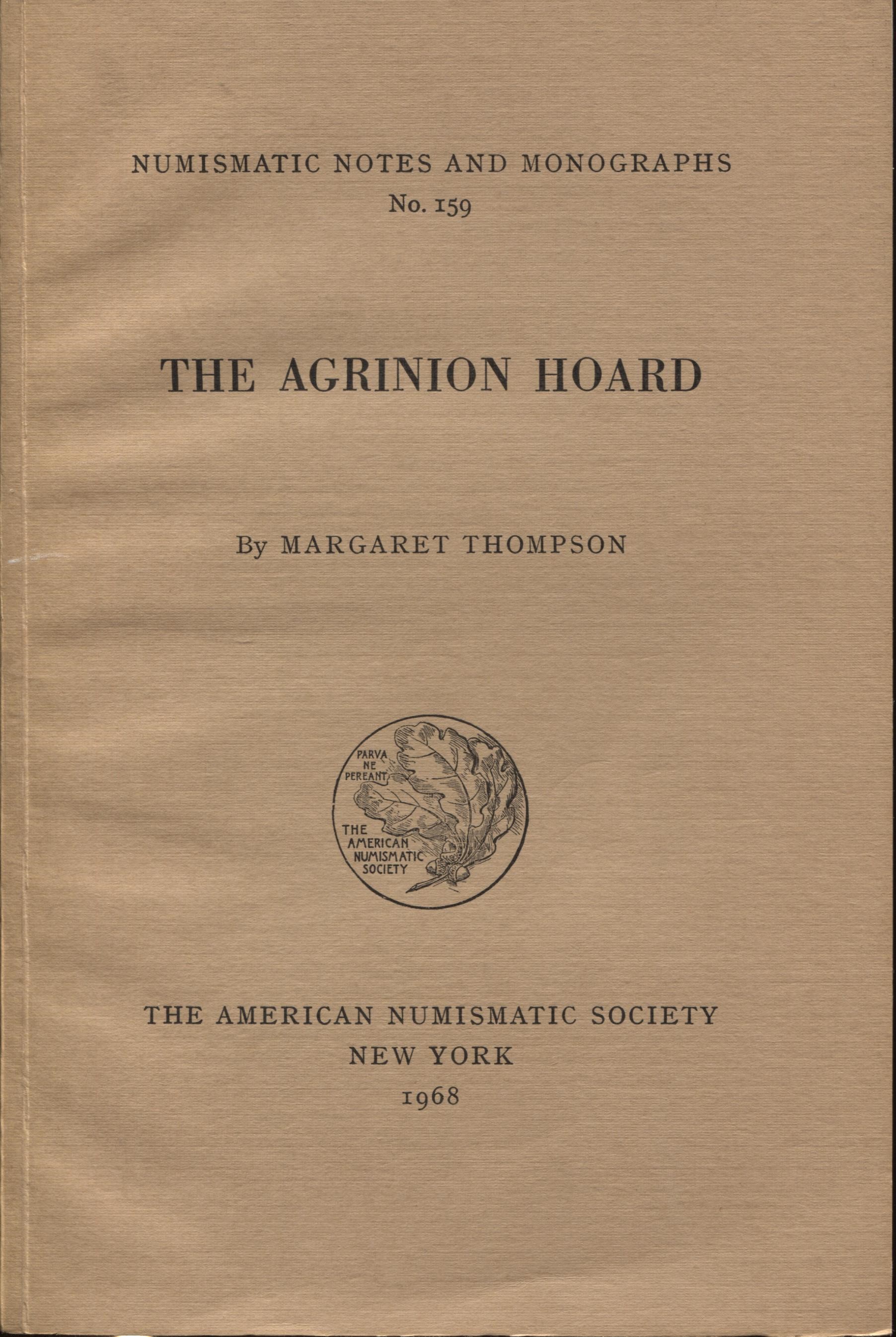 THOMPSON M. - The Agrinion hoard. N.N.M 159. New York, 1968. pp. v - 130, tavv. 56. ril ed ottimo stato, importantissimo ritrovamento di monete greche e Repubblicane romane.