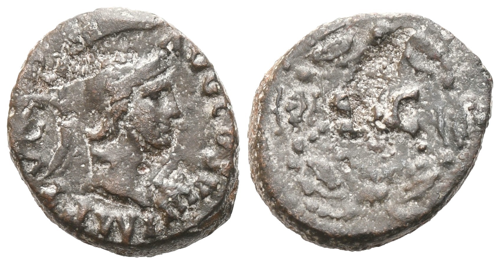 IMP T VESP-AVG COS VIII, helmeted head of Minerva r.; Rv. S•C enclosed in laurel wreath terminating in large jewel. RIC II.1 254. Dark brown patina. VF