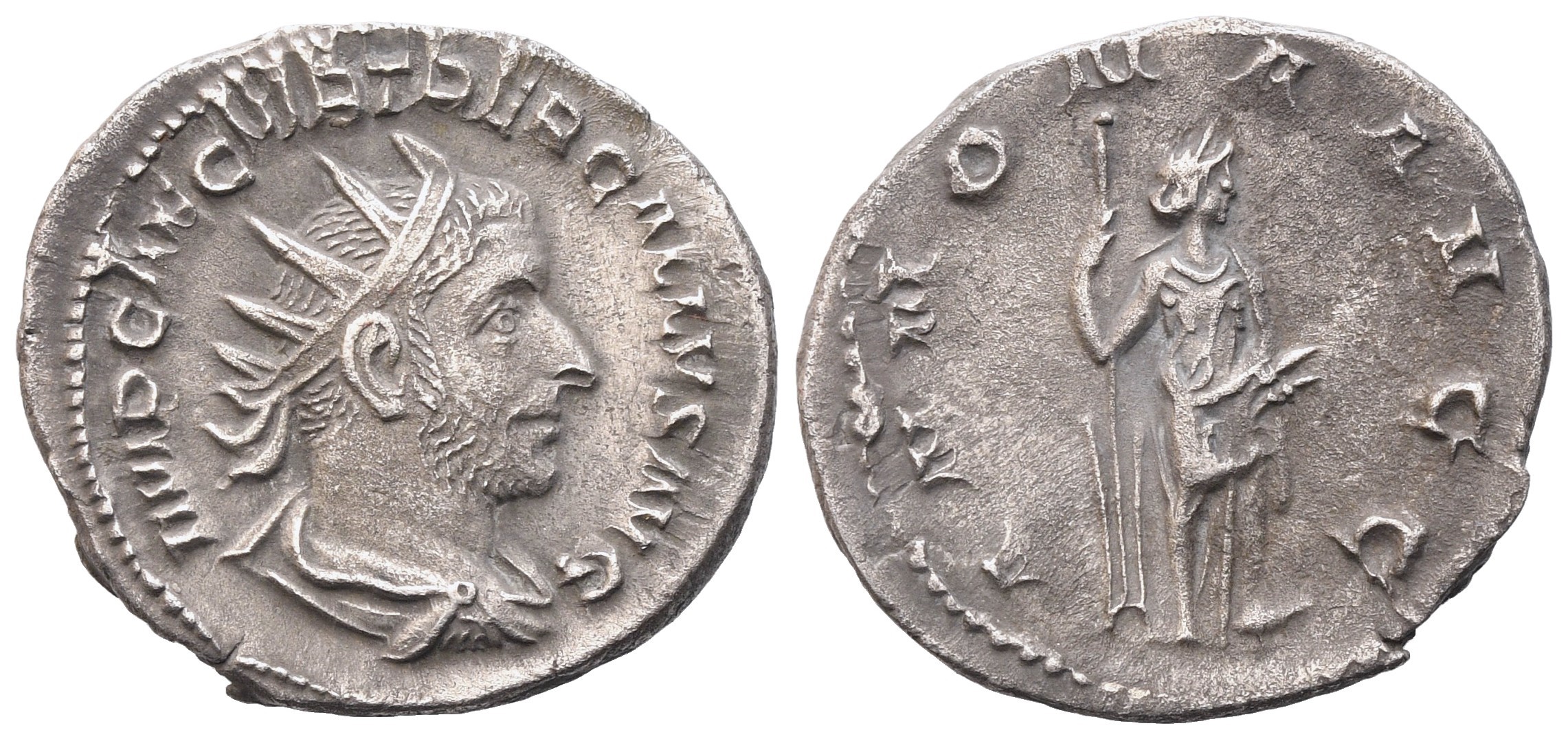 MP CAE C VIB TREB GALLVS AVG Radiate, draped and cuirassed bust of Trebonianus Gallus to r.; Rv. ANNONA AVGG Annona standing right, holding rudder and corn ears. Cohen 17. RIC 31. Good very fine.